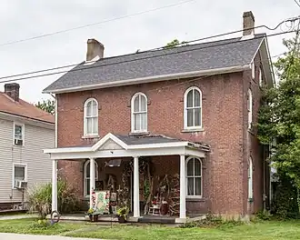 Built circa 1879, this historic structure is a 2+1⁄2-story, three-bay, "I"-plan, brick dwelling that was designed in the Italianate style. A front porch that was created in the Colonial Revival style was added circa 1900, and a 1+1⁄2-story frame addition was built circa 1950. The house features a shallow pitched roof with wide eaves and tall, arched windows with raised brick crowns.[2]