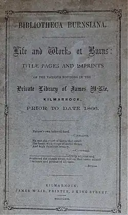 • M'Kie, James (1886). Bibliotheca Burnsiana. Life and Works of Burns ... in the Private Library of James McKie. Kilmarnock : James M'Kie.