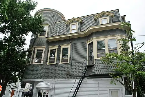 The American poet James Merrill and his partner David Jackson moved to the borough of Stonington, Connecticut, in 1954, purchasing a property at 107 Water Street.[3] It had once been a nineteenth-century residential and commercial structure that had first served as a drug store and a residence for the owner's family. Merrill spent summers in Stonington borough until his death in 1995. Village life and the apartment itself inspired some of his most important work, including The Changing Light at Sandover, his book-length epic poem based on Merrill's and Jackson's communications with the spirit world by means of a Ouija board in the turret dining room on the third floor.
