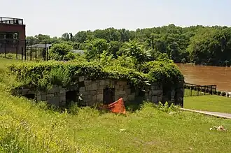 The James River Steam Brewery Cellars are a historic series of brewery-related tunnels near the Rocketts Landing development on the James River in Henrico County, Virginia. The stone-lined barrel-vaulted tunnels were built c. 1866, and are the only surviving remains of the James River Steam Brewery, which operated on the site between 1866 and 1879. The brewery was owned by David G. Yuengling, Jr., son of David Yuengling, the founder of the Yuengling brewery in Pennsylvania, and two business partners. At its height, the brewery complex included a beer garden and park that remained popular even after the brewery closed in 1879. Most of the brewery's buildings were destroyed by fire in 1891. The walls of the surviving tunnels are lined with dressed ashlar granite. The west walls, which have tunnel openings, are overgrown; only small portions of the north and south walls are visible above ground.[2]