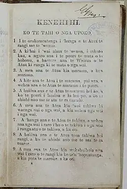As Shepherd was fluent in Maori,[11] he wrote in Maori an account of the 'Creation, Fall and Recovery of man', then a translation of St. John's Gospel. Later, as a member of a team including William Gilbert Puckey, William Yate and William Williams, he contributed to the drafting of the first Maori language version of the Bible.[12] This was the first time Te Reo was put into written form. A printed copy of Shepherd's translation of the “Book of Ruth” is currently displayed at Te Papa, Museum of New Zealand.[5] Several of James Shepherds' children grew up at Waitangi fluent in Maori before they became fluent in English, and at least two (Isaac Shepherd and John Goodwin Shepherd) became government certified interpreters, with Isaac Shepherd active in that role during the NZ Wars in Taupo/King Country.