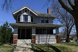 The James W. and Ida G. Bowman House is a historic building located in Marion, Iowa, United States. The Bowmans hired the Cedar Rapids architectural firm of Dieman & Fiske, and specifically partner Charles Dieman, to design this two-story wood-frame house that combines American Craftsman and Prairie School influences. Local contractor Charles I. Wilson completed construction in 1910 in a neighborhood populated by prominent citizens.[2] The wide overhanging eaves with exposed rafter ends reflects the Craftsman style, while the square massing and horizontal emphasis of the siding and roofline of the porch are typical of the Prairie School style.[2] The house was individually listed on the National Register of Historic Places in 2002.[1] At the same time it was included as a contributing property in the Pucker Street Historic District.[3]