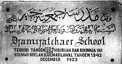 The inscription of the establishment of Jamiat Kheir School in Tanah Abang, December 1923 (early 1342 AH)