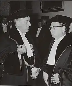 Prof. Jan Kok (left) and Prof. Jo van der Hoeven who accepted the position of Rector Magnificus this afternoon Date September 21, 1964