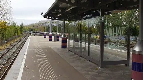 Jan van Galenstraat metro station is a station of the Amsterdam Metro's Route 50 (Ringlijn) and Route 51. It was opened on 28 May 1997 and is named after Commodore Jan van Galen who served under the Dutch Republic. Near the station are located the OLVG West (also known as Sint Lucas Andreas Hospital), Student Hotel Amsterdam West and Sports Hall Jan van Galen.[1] There is a Tram-stop right by the main entrance.