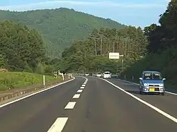 Route 396 heading south up to Kotoge Pass. Notice the added passing lane. Slower traffic is instructed to keep left.