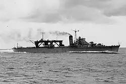Chiyoda (千代田, "Thousandth-Generation Field") was a light aircraft carrier of the Imperial Japanese Navy during World War II. Originally constructed as the second vessel of the Chitose-class seaplane tenders in 1934, she continued to operate in that capacity during the Second Sino-Japanese War and the early stages of the Pacific War until her conversion into a light aircraft carrier after the Battle of Midway. She was sunk during the Battle of Leyte Gulf by a combination of naval bombers, cruiser shellfire and destroyer-launched torpedoes.[1]