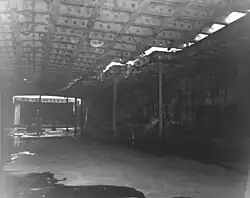 Ryūhō was attacked by Task Force 58 aircraft on 19 March near Kure, suffering hits by three 500 lb bombs and two 5.5-inch rockets. The damage was severe: the flight deck bulged upward between the two elevators, the No. 1 boiler was punctured by a bomb fragment, the stern settled two meters into the water, and a raging fire broke out. Twenty crewmen were killed and thirty were wounded. Upon returning to Kure on 1 April, Ryūhō was considered to be a total loss. Moored as an abandoned hulk off of Etajima, she was attacked by American aircraft again on 24 July and 28 July. She was struck from the navy list on 30 November 1945[2] and scrapped in 1946.