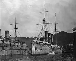 Otowa (音羽) was a protected cruiser of the Imperial Japanese Navy, designed and built by the Yokosuka Naval Arsenal in Japan. The name Otowa comes from a mountain in Kyoto, located behind Kiyomizu-dera. The waters from a waterfall at this temple were traditionally held to be a cure for all illnesses.