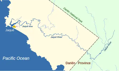 The Jaqué River is a river in the Darién Province of southern Panama. It flows generally westward from its source in the Darién National Park to the town of Jaqué, where it enters the Pacific Ocean.