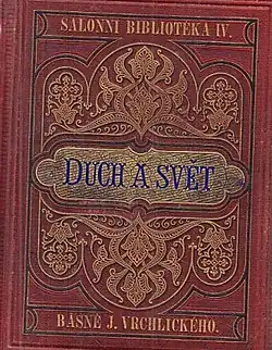 Vrchlický's early poetry expresses his perception of life through natural motifs. It deals with love experiences, youthful pessimism and artistic self-doubt. His reflections are shown in natural imagery, his poems praise the ideals of art and beauty.[5] It is represented mainly by the collections:
