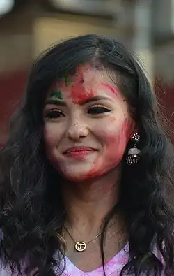 Gurung celebrating Holi festival in Kathmandu (2019)