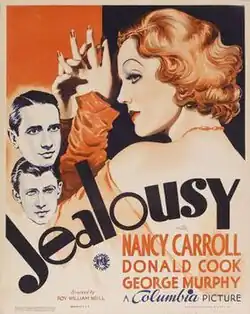 Jealousy is a 1934 American drama film directed by Roy William Neill and starring Nancy Carroll, George Murphy, Donald Cook and Raymond Walburn. The film was released on November 23, 1934 by Columbia Pictures.