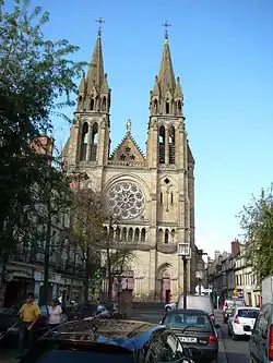 Lassus designed a few secular buildings, where he showed that he could build in fashionable Louis-Philippe or Louis XIII styles as required by his client, or for harmony with the surrounding buildings. However, he mostly worked on Gothic-style religious buildings, notably Saint-Nicolas de Nantes (1840), Sacré-Coeur de Moulins (1849), Saint-Pierre de Dijon (1850), Saint-Jean-Baptiste de Belleville(1853) and the Église de Cusset (1855).[5]