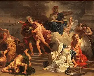 After returning to Paris, he was admitted into the Académie royale de Peinture et de Sculpture in 1787[1] for his portrayal of Aeneas being healed, which resulted in a rush of commissions. In 1788, he produced a canvas on the death of Seneca ordered by the Comte d'Angiviller on behalf of King Louis XVI.