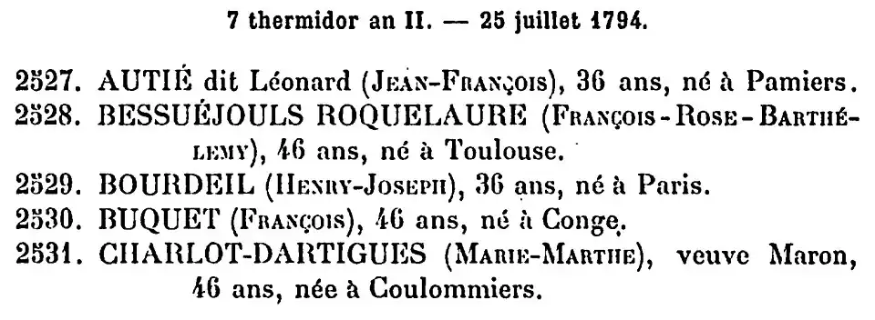 Detail from the list of victims of the Revolutionary Tribunal of Paris on 25 July 1794