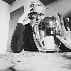 Lepage is a great admirer of the painters Albrecht Dürer, Diego Velázquez, Kandinsky, Picasso and Braque,[14][15] and his photographs reflect his love for painting. Working with large format film cameras, Lepage's photography is produced on a knife's edge. His hands-on in the gelatine, like a paintbrush in oil and pigments, the photographer reconstructs the body's anatomy, cutting the negative to build a new, multiple image. From these cut, multiplied, recomposed faces and bodies, a complex identity suddenly rises to the surface.[16] The character's individuality emerges and creates an oscillatory wave that disturbs the peaceful surface of the image, causing it to waver between seduction and repulsion, sophistication and brutality. These images, with their stripped-back composition, are inhabited by strangely motionless beings, suspended in their own time and space; while lost in their dreams and thoughts, they meander through a land where the imaginary world of the photographer, the character and viewer's imagination project and come together.