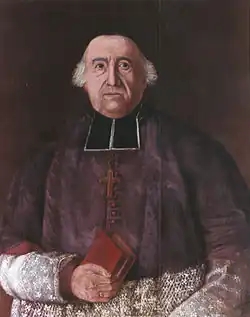 He notably excommunicated Maryland-born Jesuit priest John Carroll, when the latter tried to encourage Canadians to join the revolution or at least remain neutral. Carroll was apparently somewhat ambiguous about a clergyman being involved in political matters, took opportunity to accompany the ailing Franklin back to Philadelphia.[6]