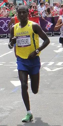 ![]() Jean Pierre Mvuyekure in the marathon at the 2012 Olympics in London | |