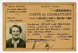 Louise Boitard (20 May 1907 – 4 April 2001), also known as Jeanine Boitard and Jeanine Gille, was a member of the French Resistance during the Second World War. Later a local politician, she was one of France's most decorated women.[1]