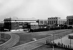 In 1915, the citizens of Los Angeles voted to sell bonds to raise $4,600,000 to build schools in the Los Angeles area. Approximately $500,000 was appropriated to build Jefferson High School[3] on the "Stadium East Grounds" (The Old Coliseum)[a] which held approximately 25,000 people in a circled amphitheater configuration. The "Stadium," as it was known, was the site for hosting and entertaining travelers on the way to both the San Diego and San Francisco world expos in 1915. Numerous rodeos and bicycle races were held at the location.[4]