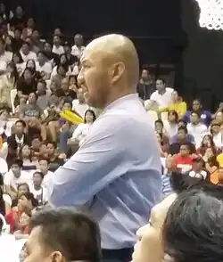 On April 29, 2014, Cariaso was named as the new head coach of Barangay Ginebra, replacing Ato Agustin.[2] Prior to this, he has no high-level head coaching experience. In fact, he has little coaching experience apart from San Mig Coffee, joining the team in 2011, one year after retiring as a player, to assist his former coach at Alaska, Tim Cone. At San Mig, he emerged as the top assistant, often taking over the reins when Cone was ejected, or when the team was getting blown out and the American coach wanted to send a message to his players.[3] His tenure as coach of the Gin Kings did not produce much success, as the team failed to go beyond the quarterfinal rounds in the 2014 Governors' Cup and in the 2014–15 Philippine Cup. Moreover, the triangle offense system he uses did not sit well with the players. At the end of their Philippine Cup campaign, he was relieved of his coaching duties and was replaced by Ato Agustin. He still has one year and two conferences left in his contract, which was bought out, paving the way to his return to Alaska as assistant coach and camp director.