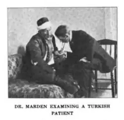 Shortly after graduating with his M.D. in 1898, Marden was employed by the American Board of Commissioners for Foreign Missions and was sent to Gaziantep, Turkey to practice medicine.[5] From there, he practiced medicine in Gaziantep, Adana, and Merzifon, Turkey before he was recruited by the American Board of Commissioners for Foreign Missions in 1905 to lead the hospital at Anatolia College in Merzifon. Under his leadership and fundraising efforts, the hospital's capacity expanded greatly, with renovated and new buildings, electrification, and modern medical equipment.