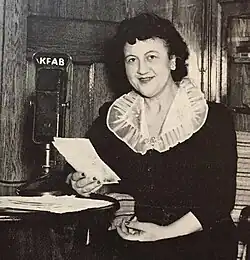 On June 1, 1942, Young became the first host of WFIL's Kitchen Club in Philadelphia.[16][17] The following year she and her family moved to Nebraska (first Lincoln and later Greeley), from whence Young broadcast her program for approximately twelve years,[18][19] initially on KFAB and, beginning in 1950, on KLMS.[20][21]