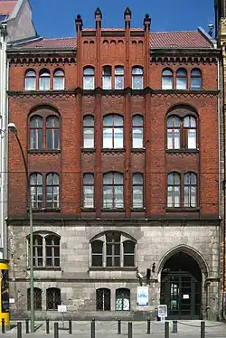 The first Jewish Museum in Berlin was founded on 24 January 1933, under the leadership of Karl Schwartz, six days before the Nazis officially gained power. The museum was built next to the Neue Synagoge on Oranienburger Straße and, in addition to curating Jewish history, also featured collections of modern Jewish art. Schwartz intended the museum as a means to revitalise Jewish creativity, and to demonstrate that Jewish history was living history.[2] The museum's art collection was also seen as a contribution to German art history and one of the last exhibitions to be held was a retrospective of the German impressionist, Ernst Oppler in 1937.[3] To reflect this focus on living history, the entrance hall of the museum both contained busts of prominent German Jews, such as Moses Mendelssohn and Abraham Geiger, and also a number of works by contemporary Jewish artists such as Arnold Zadikow and Lesser Ury.[2]