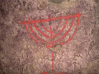 In total, the catacombs have yielded about seventy epigraphs, one of which is dated precisely to 521 CE. Most of the names listed in the catacombs reflect the tendency of Jewish diaspora to take Greek or Latin names as opposed to names in Hebrew, with only a small minority of the people buried there having names reflecting a Hebrew etymology. The earliest writing in the catacombs is usually in Koine Greek, with Latin existing in the newer and deeper sections of the catacombs.[2] There is more Hebrew text in these catacombs than in the better-known Jewish catacombs of Rome. Religious iconography, such as the menorah, can be seen in the catacombs.
