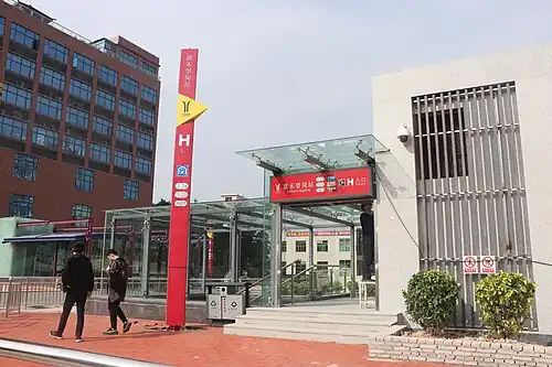 Jiahewanggang Station (simplified Chinese: 嘉禾望岗站; traditional Chinese: 嘉禾望崗站; Jyutping: gaa1 wo4 mong6 gong1 zaam6; Cantonese Yale: Gāwòhmohnggōng Jaahm), formerly known as Jiahe Station (嘉禾站; gaa1 wo4 zaam6; Gāwòh Jaahm) during its planning stages, is an interchange station between Line 2, Line 3, and Line 14 of the Guangzhou Metro. It is also the northern terminus of Line 2, and the southern terminus of Line 14. It is located underground, just northwest of Lingnan New World Garden[1] in Baiyun District of Guangzhou.[2] It started operation on 25 September 2010. On 28 December 2018, Line 14 (Phase 1) opened. Jiahewanggang became the interchange station of Line 2, Line 3 and Line 14.