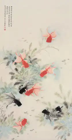 - Goldfish and Lotus, ink and color on paper, c. 1920, Palace Museum, Beijing, China.[1]
