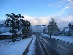 Jindabyne is one of the highest settlements of its size in Australia, at 918 metres above sea level.[4] Snowfalls regularly occur during winter. Jindabyne is connected to the surrounding area by Kosciuszko Road East to Cooma then North to Canberra, the Alpine Way West to the Riverina and Wodonga and the Barry Way to the South and Gippsland.
