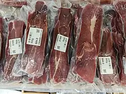 Jinhua ham (Chinese: 金華火腿) is a type of specialty dry-cured ham named after the city of Jinhua, where it is produced, in Zhejiang province, China.[1][2] The ham is used in Chinese cuisines to flavor stewed and braised foods as well as for making the stocks and broths of many Chinese soups. The ham was awarded first prize in the 1915 Panama International Merchandise Exhibition.[3]