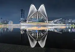 The Zhuhai Jinwan Civic Art Centre (simplified Chinese: 珠海金湾市民艺术中心; traditional Chinese: 珠海金灣市民藝術中心; pinyin: Zhūhǎi Jīnwān Shìmín Yìshù Zhōngxīn) is a cultural complex located in the Jinwan District of Zhuhai, Guangdong, China. Designed by Zaha Hadid Architects and completed in 2023, the centre integrates a Performing Arts Centre, Science Centre, and Art Museum. Situated on ZhongXin Lake, it serves as a key cultural hub in the region. The building's design, inspired by the flight patterns of migratory birds, features a distinctive roof structure and sustainable architectural elements.[1][2]