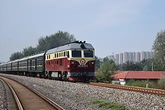 The Jinzhou–Chengde railway is a passenger and freight railway line in China. It is used by trains carrying coal from Inner Mongolia to ports in Liaoning for export.[1]