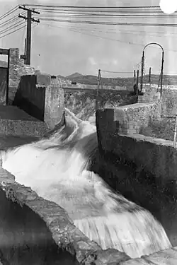 There is little known about the Gomis-owned grid during the civil war; as both brothers sought refuge abroad, the power and distribution installations must have been operated by local committees or sindicates.[143] After the war it turned out that the infrastructure was badly damaged,[144] unclear whether due to technical incompetence, poor maintenance,[145] destruction carried out by withdrawing Republican troops or result of "artillería hidraulica", Nationalist damage intended to cause power shortages in Republican zone.[146] Joaquín and Enrique embarked on reconstruction works, carried out until the early 1940s. As they maintained good relations with the regime the works were heavily subsidized, especially that brothers cultivated personal links to local administration, e.g. in the Lerida province.[147] In 1941 there were 8 installations of EHSA operational on Canal de Piñana, Segre and Canal de Urgel; the largest one, Torrefarrera (8,1 m high, 4.800 liters/second) produced 1.2m kWh annually, and in aggregate they produced 2.6m kWh per annum.[148] Similarly, power plants on the Llobregat were brought back to shape.