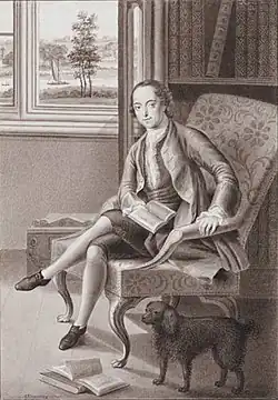 Horace Walpole in the Library at Strawberry Hill House, 1756 drawing by Johann Heinrich Müntz