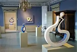 While the works tend to be impressive in size, curving forms often evoke an impression of movement, suggestive of dance, music, or streaming water.[13][14][15][16] The curved shapes of her works have been described, on the one hand, geometric or architectural or, on the other, organic or biomoprhic.[17][18][19][20] Nevertheless, her works have also been considered “surreal” and not constricted by form.[19]