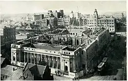 A competition was held in 1909 to design a new Town Hall. Only South African resident architects were allowed to take part and entries were judged by Leonard Stokes, Vice-President of the Royal Institute of British Architects and a decision was made in March 1910.[3]: 244 A Cape Town architectural firm, Hawke and McKinlay, won the competition to design the new building but it took until 17 February 1912 before Mattheus Meischke was awarded the tender to construct the building which would cost £503,000.[3]: 244 [4] The site chosen was the eastern end of Market Square where one half was purchased by the Johannesburg Town Council from the South African Government and then latter donated the other half on condition that a town hall was built.[3]: 244 On 29 November 1910, the Town Hall's corner stone was laid by Prince Arthur, Duke of Connaught and Strathearn on land previously known as Market Square.[5] Completed in December 1914, the Town Hall was officially opened on 7 April 1915 by the South African Governor-General Lord Buxton having been presented a golden key by the builder, Mattheus Meischke, with the building open to the public for two days.[3]: 245 [5][6] The building was officially in use earlier, having opened on 26 January 1915.[3]: 245