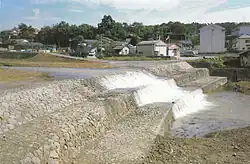 The dam spans a width of 34 metres and rises to a height of 7 metres. Today, it is celebrated as one of the oldest extant industrial heritage sites from the Meiji era. In recognition of its historical and engineering significance, it was accorded the status of an industrial heritage site by the Japanese Association of Civil Engineers in 2004. A similar dam, sharing the same name, was erected in Kaizu-shi by De Rijke in 1891.[22]