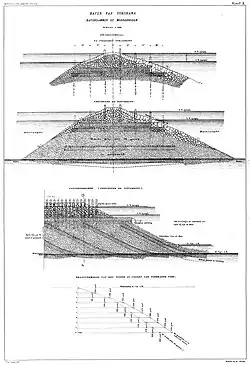 A critical aspect of this developmental phase was the contrasting levels of diplomatic support each proposal received. The English engineers benefitted from robust backing through British diplomatic channels, whereas their Dutch counterparts received negligible support from the Netherlands government. The fundamental disparity between the two designs lay in their foundational approaches: De Rijke's plan was predicated on the use of fascine mattresses, a decision informed by the soft soils of the port's seabed. In contrast, Palmer's concrete-based design was deemed excessively rigid for such ground conditions.[18]