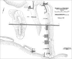 Sketch of the hillforts and excavation sites by Walther Cartellieri 1912