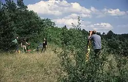 In 1983 and 2002, further finds were deposited in the Museum Weimar, which could be picked up during the cultivation of the inner surface for the subsequent afforestation or recovered during a renovation of the inner blind wall. In spring and summer 2003, Tim Schüler of the Thuringian State Office for the Preservation of Monuments and Archaeology undertook geophysical measurements. An area of several square meters at the southern end of the plateau between the two hillforts was investigated using geomagnetics, and the absence of areal features was confirmed. In addition, a geoelectrical profile, also called a pseudo-profile, was made through the early medieval hillfort in the area of the current path, and two other pseudo-profiles were made through the remains of the edge hillfort in the southwest corner of the plateau.