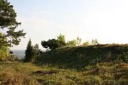 Johannisberg is a prominent ridge of the Wöllmisse, a Muschelkalk plateau east of Jena. The steeply sloping spur of land to the Saale Valley north of the district of Alt-Lobeda bears the remains of two important fortifications from the late Bronze Age and the early Middle Ages. Due to several archaeological excavations and finds recovered since the 1870s, they are among the few investigated fortifications from these periods in Thuringia. Of particular interest in archaeological and historical research is the early medieval castle. Due to its location directly on the eastern bank of the Saale, its dating and interpretation were and are strongly linked to considerations of the political-military eastern border of the Frankish empire. It is disputed whether it was a fortification of independent Slavic rulers or whether it was built under Frankish rule. According to a recent study, it may have been built in the second half of the 9th century in connection with the establishment of the limes sorabicus under Frankish influence.[2]