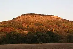 The Muschelkalk plateau of the Wöllmisse jumps out here with a boot-shaped spur far to the west. The Johannisberg with a height of 360–373 meters above sea level is limited in the north by the narrow Pennickental and in the south by the wide valley of the Roda. In the west it breaks off steeply, in the upper part almost vertically to the Saale Valley. The height difference is 215–220 m. It can be distinguished between a roughly trapezoidal plateau with 180 m of greatest length and 70 m of greatest width and the steeply sloping, ridge-shaped, northwest-facing peak with a length of about 200 m. To the east, the mountain, with an average width of 120 m, merges into the plateau of the Wöllmisse without any natural obstacle. There are two powerful springs in a small, deep water crack on the southern edge of the mountain, about 250 m south and 100 m below the plateau. North of the Johannisberg, the Pennickenbach flows in the valley about 140 m below.[3]