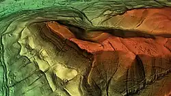 Paul Grimm and Hansjürgen Brachmann, on the other hand, saw this as a Frankish foundation.[24] Reinhard Spehr, in 1994 and 1997, has spoken out most clearly in favor of the assumption of a late Frankish foundation with far-reaching conclusions. According to him, "the Franks built a castle with stone wall facades to secure the imperial border in the 8th century."[25] Against the "view presented again and quite apodictically by Spehr" Matthias Rupp again turned in 1995. Although he spoke of a "fortification on the Johannisberg which so far does not allow an unambiguous ethnic classification", he gave arguments against a Carolingian border castle with the parallels in Slavic castle construction, Slavic pottery and the strategic orientation of the fortification on the high plateau of the eastern bank of the Saale.[26] In 2002, Peter Sachenbacher counted Johannisberg among the "castles which, at the time of their construction, are to be addressed as purely Slavic in terms of their ethnos."[27] Four years later, he stated, "Today, it is correctly assumed that the predominance of Slavic pottery does not automatically suggest a Slavic castle, and that it is quite more likely that the complex was built under Carolingian rule."[28]