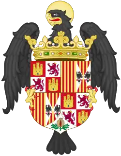 John's death was followed closely by that of his sister Isabella in 1498.[47] Her only child, Miguel de la Paz, died in 1500.[48] The Spanish kingdoms passed to his younger sister Joanna, her husband Philip the Handsome, and their Habsburg descendants.[32] Philip had himself and Joanna declared as 'Princes of Castile' which her parents saw as disrespectful towards his deceased brother-in-law.[46]