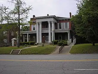 The house was originally built as an Italianate villa with a central brick tower flanked by one-story wooden porches. A Classical Revival portico and porches were added in the early 1900s.[2]