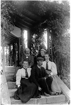 The Aclands had eleven children. Two of them, Barton Dyke (1860–1863)[13] and Emily Dyke (1864–1864),[14] died in infancy. Five daughters (Harriet Dyke, Lucy Alice Dyke, Elizabeth "Bessie" Dyke, Emily Rosa Dyke, Agnes Dyke and Mary Emily Dyke) lived to adulthood. John Dyke Acland returned to live in England and was a Justice of the Peace in Somerset. Henry Dyke Acland was chairmen of the Board of Governors of Canterbury College (1918–1928)[15] and became the Danish consul to Christchurch in 1926. Hugh Acland, later to become a prominent surgeon, was their eleventh and youngest child.[16] Hugh Acland's son Jack Acland became MP for Temuka.[17]